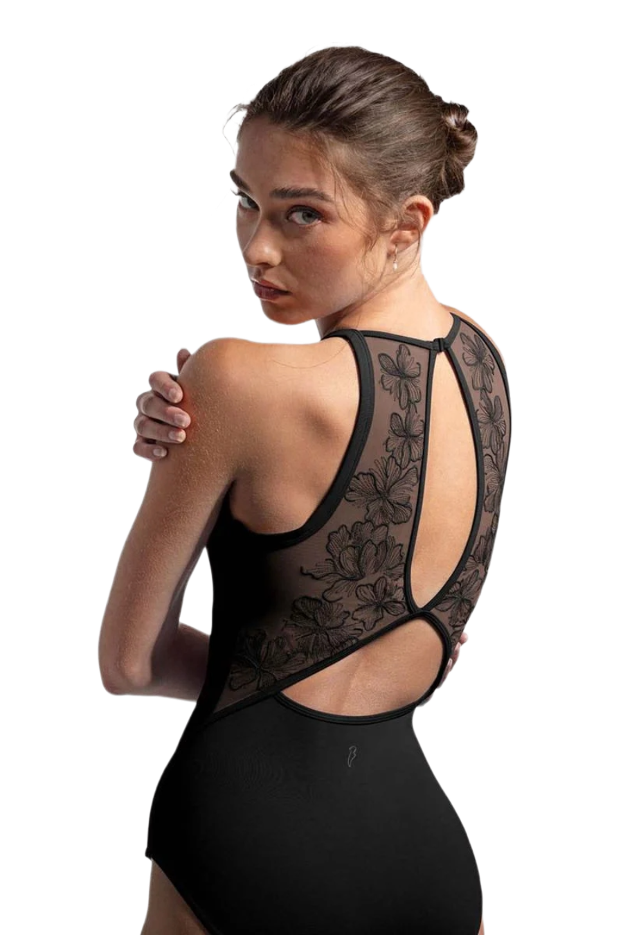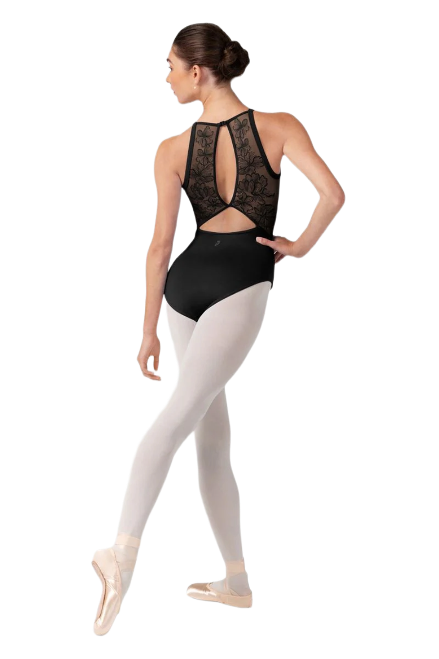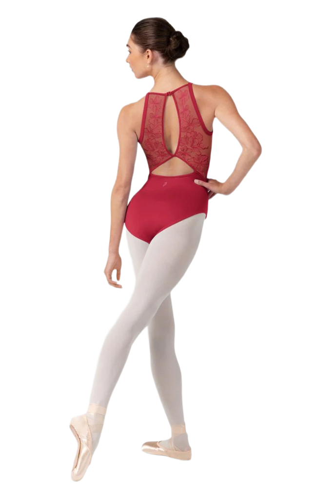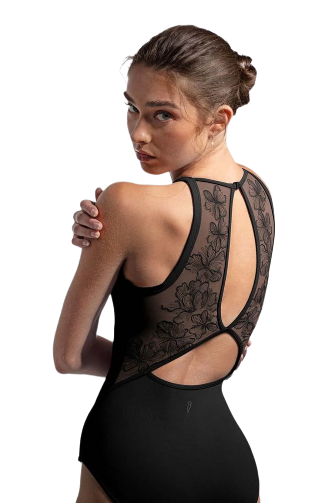 Nosso collant feminino Iris Floral com alças halterneck apresenta tiras delicadas que contornam o pescoço, com um romântico decote em formato coração, painéis traseiros em tela bordada com riqueza de detalhes e costas duplamente abertas com fecho de clipe. Bordados florais delicados florescem sobre cada silhueta, enquanto as costuras inspiradas em espartilhos adicionam um toque romântico ao seu guarda-roupa de dança. A Coleção Camellia combina beleza atemporal com precisão técnica — inspirando confiança em cada movimento, do estúdio ao palco.