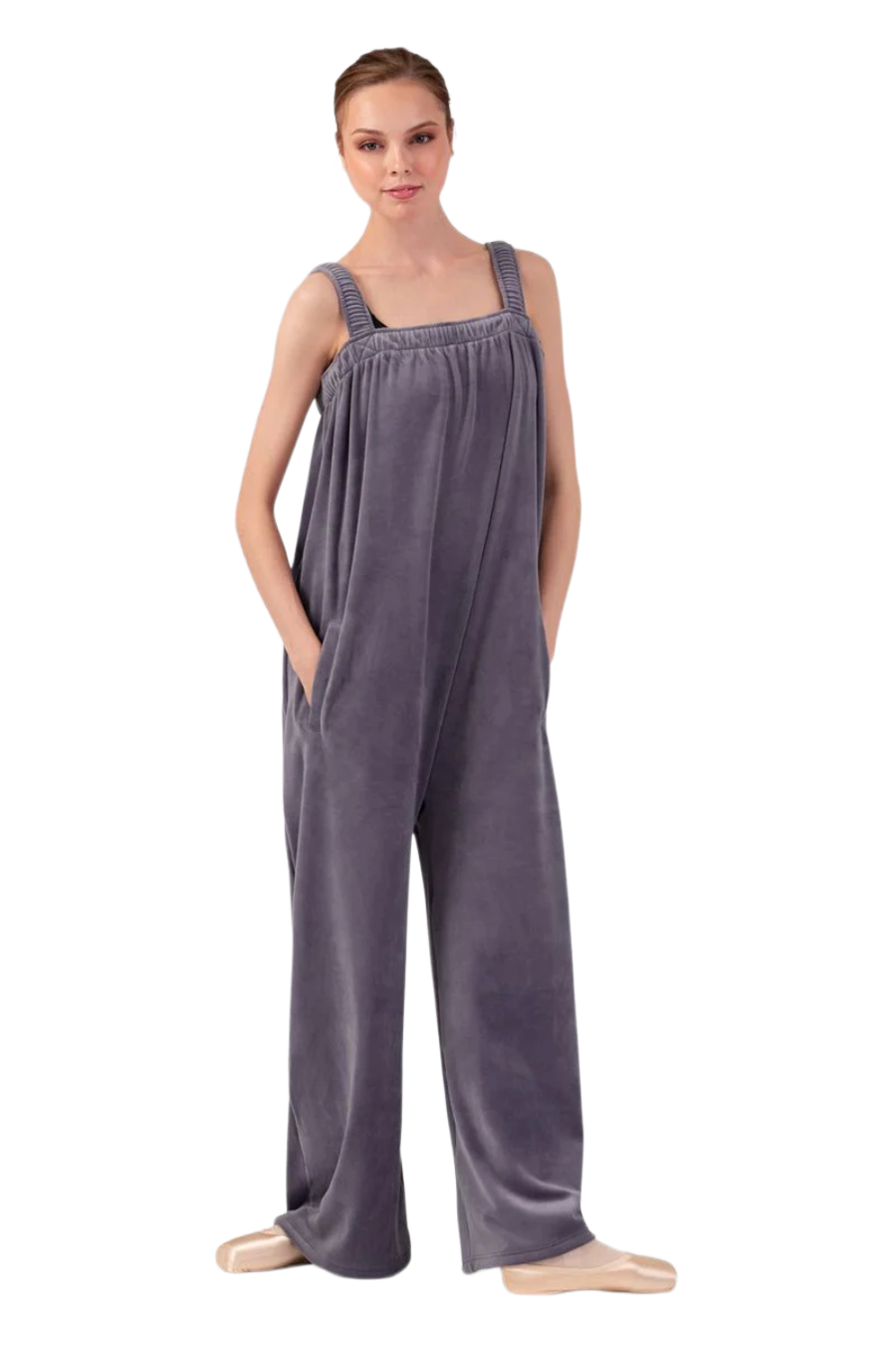 O Macacão de Veludo Isabella para Mulheres foi criado para sobreposições práticas e elegantes. Com bolsos laterais funcionais, silhueta solta e decote quadrado suavemente franzido, é a peça ideal para vestir sobre o collant e manter os músculos aquecidos e prontos para cada movimento.