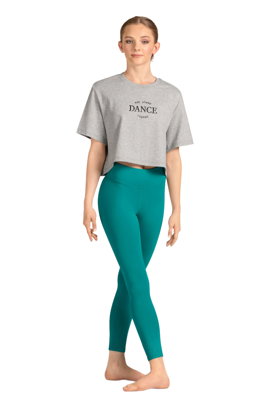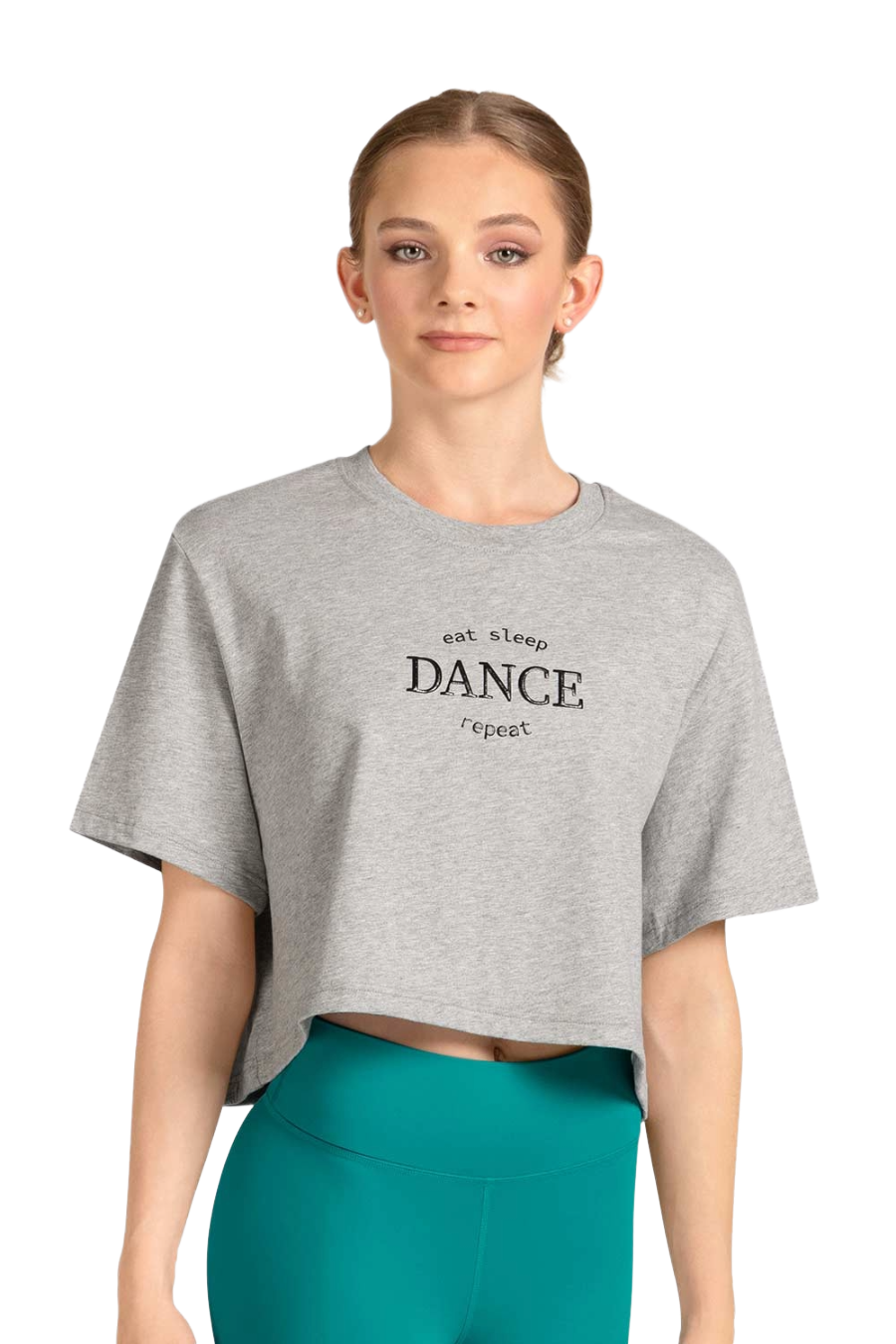 - Estampa em gel “Eat Sleep Dance Repeat”.
