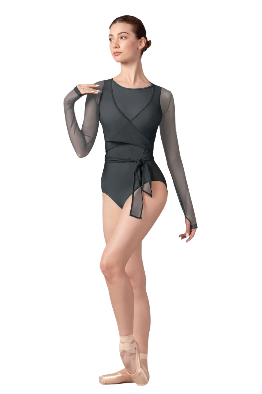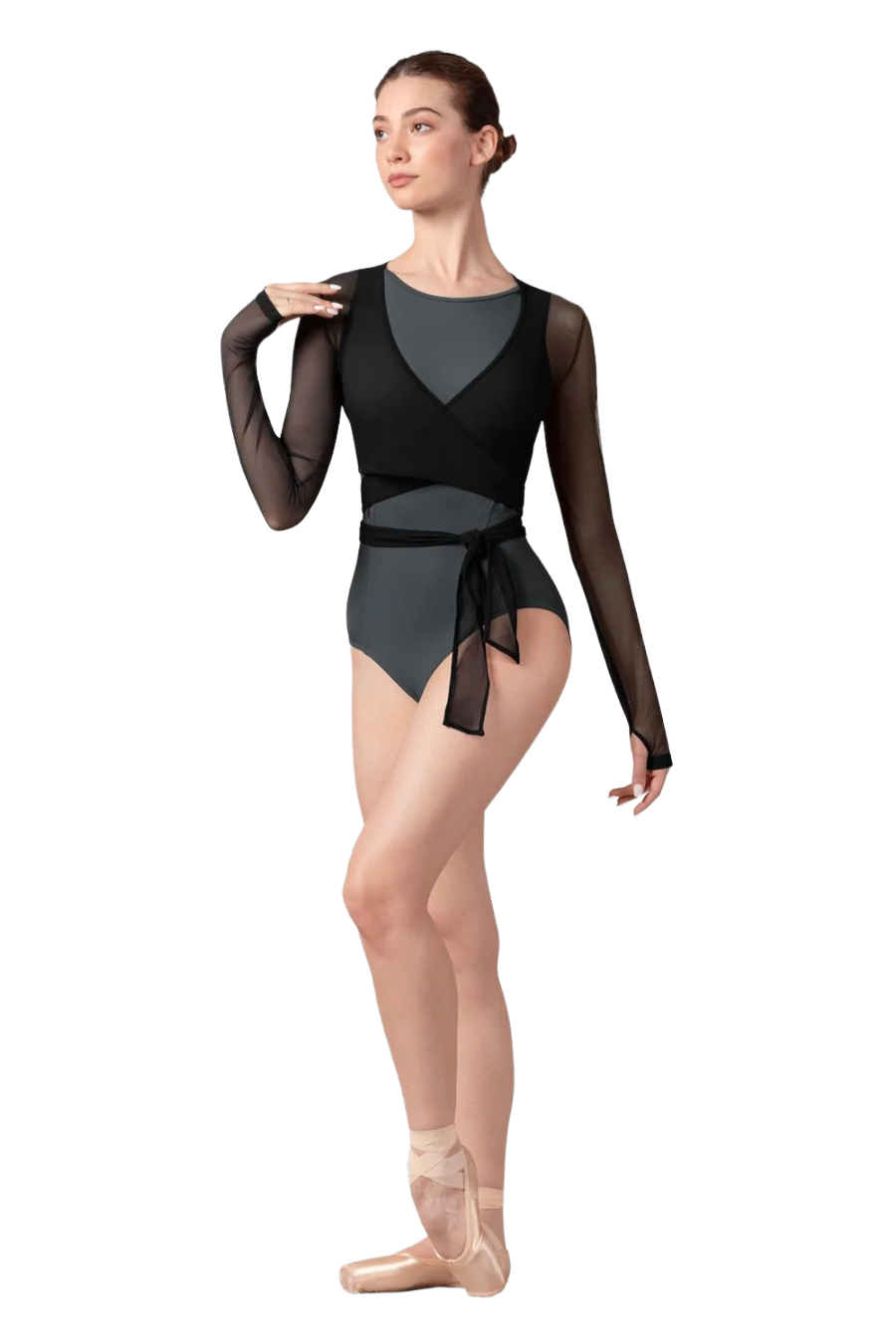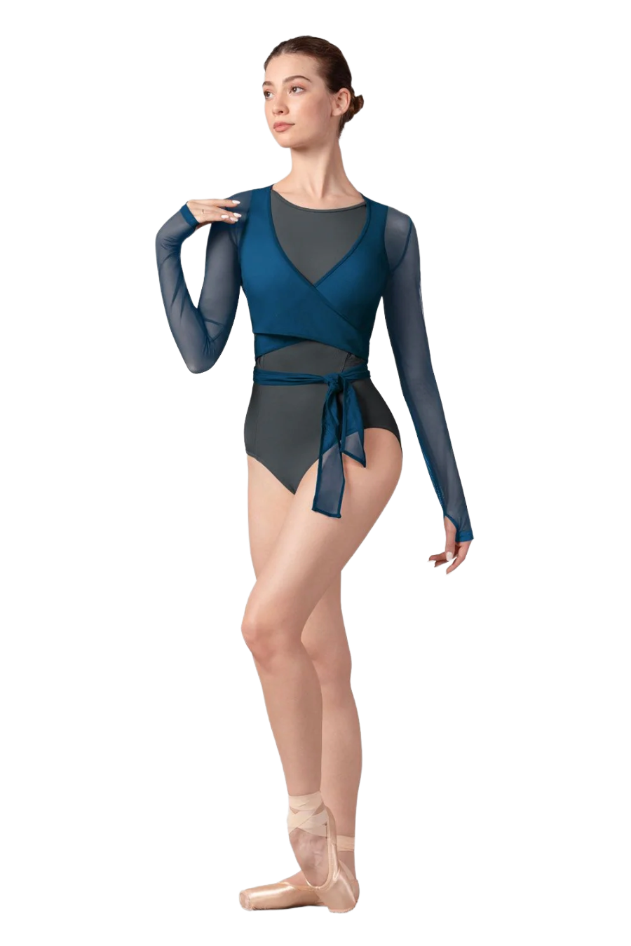 Nossa Blusa Feminina Bethan Mesh Wrap possui mangas longas, um clássico e atemporal ajuste com amarração na cintura e decote profundo em V. Combine com seu collant Bloch Entwine favorito para um visual pronto para o estúdio. Nossa Coleção Bloch Entwined apresenta uma releitura contemporânea de silhuetas clássicas. Lindamente confeccionada com detalhes entrelaçados e delicados toques em tela para um toque de elegância. Produzida com nosso tecido de performance exclusivo, que se movimenta com você de forma fluida, disponível nas cores preto clássico, cinza e um marcante azul pavão.