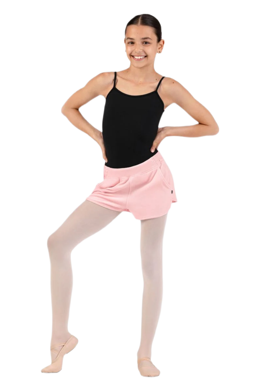 O Short de Veludo Kelly para Meninas possui cós alto franzido, oferecendo praticidade e conforto ao vestir. Com bolsos laterais funcionais, pode ser combinado com o collant favorito e o moletom Lily de veludo com gola careca para compor um conjunto elegante de aquecimento.
