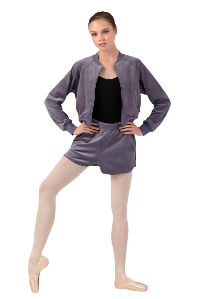 Nossa Jaqueta Bomber de Veludo Amanda Feminina apresenta mangas raglan, punhos, gola e barra canelados, com fechamento frontal em zíper. Combine com a nossa Calça de Veludo Gloria Feminina para um conjunto luxuoso de aquecimento.