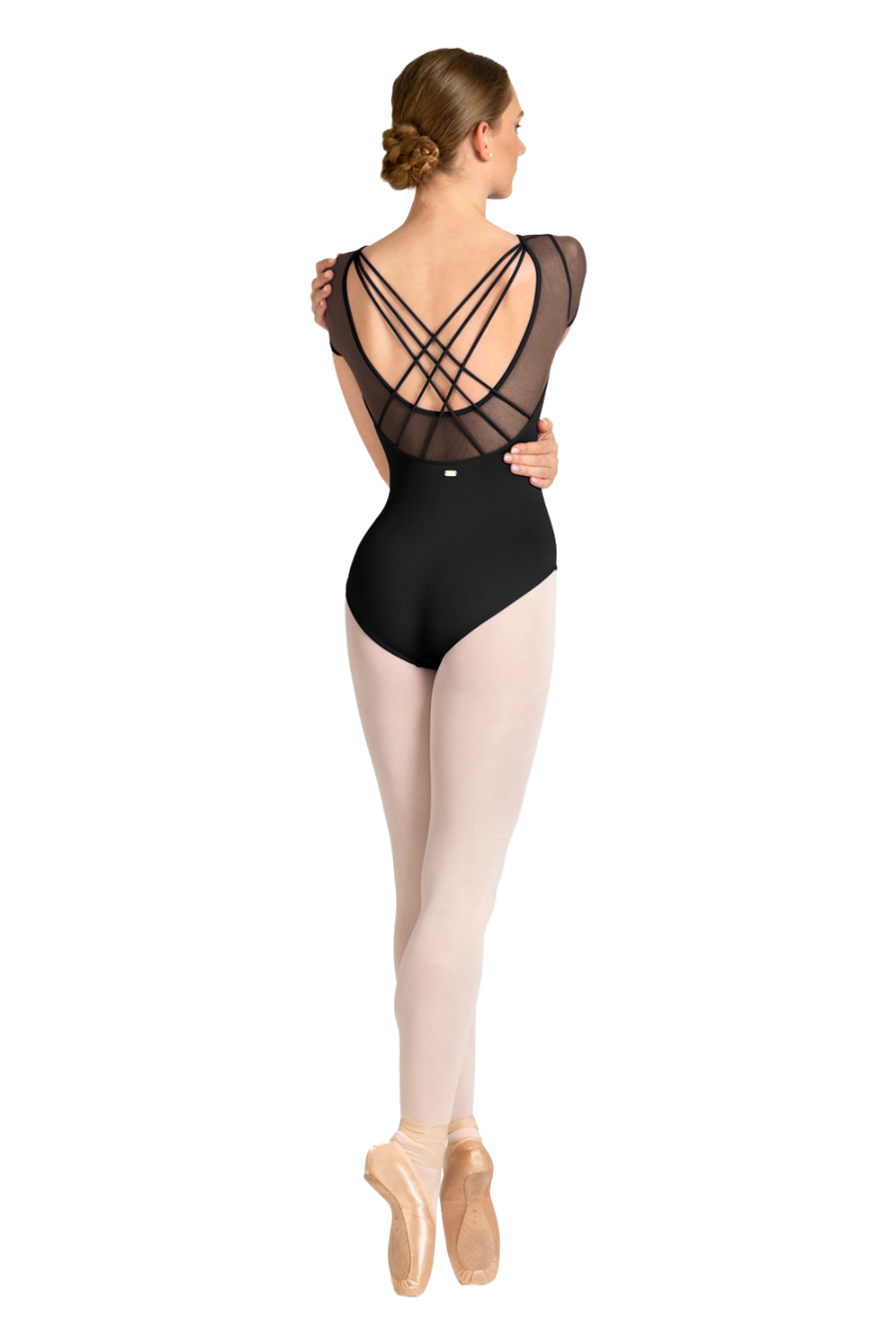Collant Ballet com Mangas Curtas em Tule Mirella Celeste